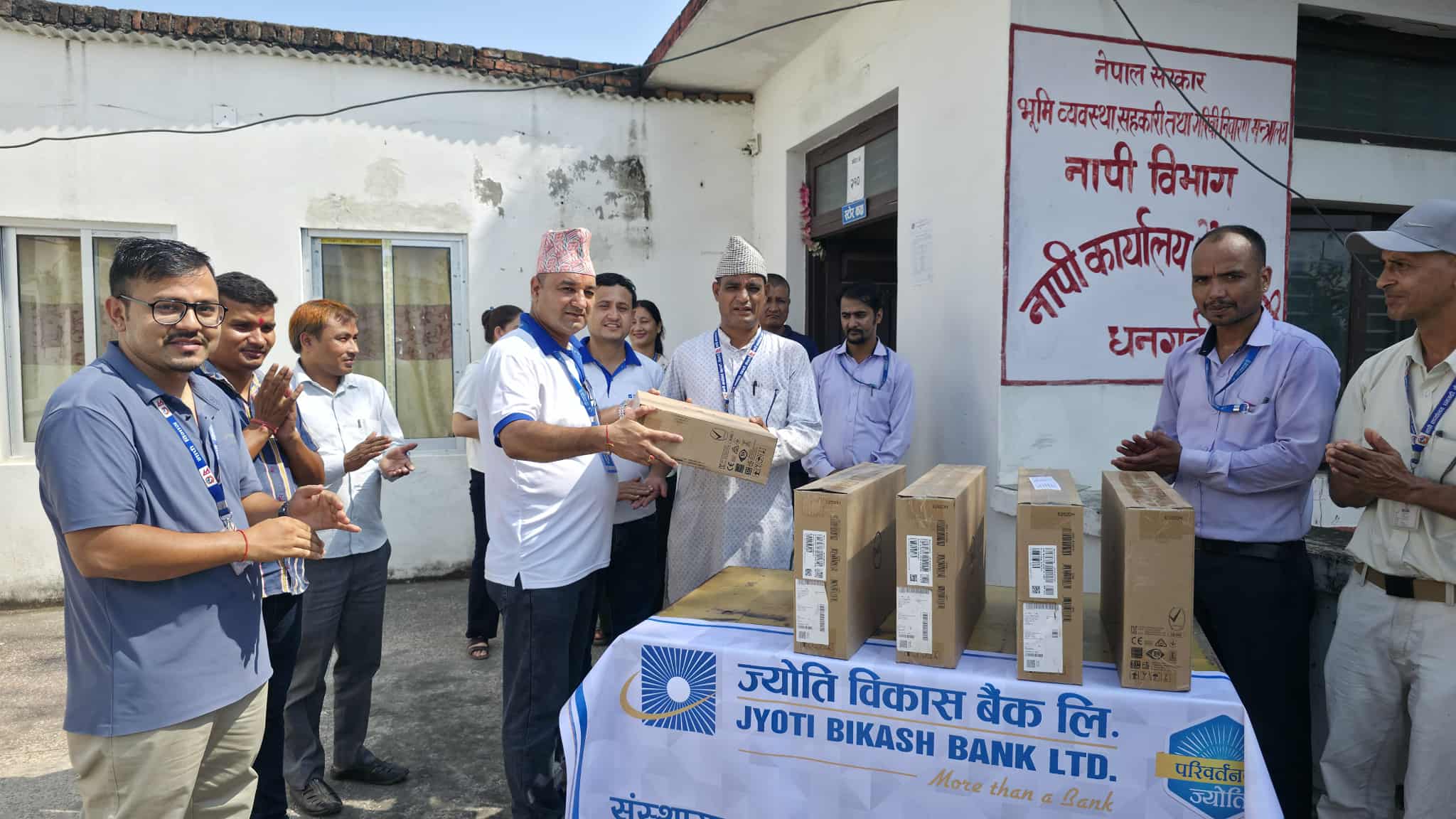 जेनजी आन्दोलनबाट क्षतिग्रस्थ भएका कैलालीको धनगढी नापी र मालपोत कार्यालयलाई ज्योति विकास बैंक लिमिटेडले ईलेक्ट्रोनिक समाग्री सहयोग गरेको छ । ज्योति विकास बैक लिमिटेड शाखा अत्तरियारले नापी कार्यालय धनगढीलाई ५ सेट कम्प्युटर मनिटर र धनगढी शाखाले मालपोत कार्यालयलाई १ सेट कम्प्युटर सहयोग गरेको हो ।