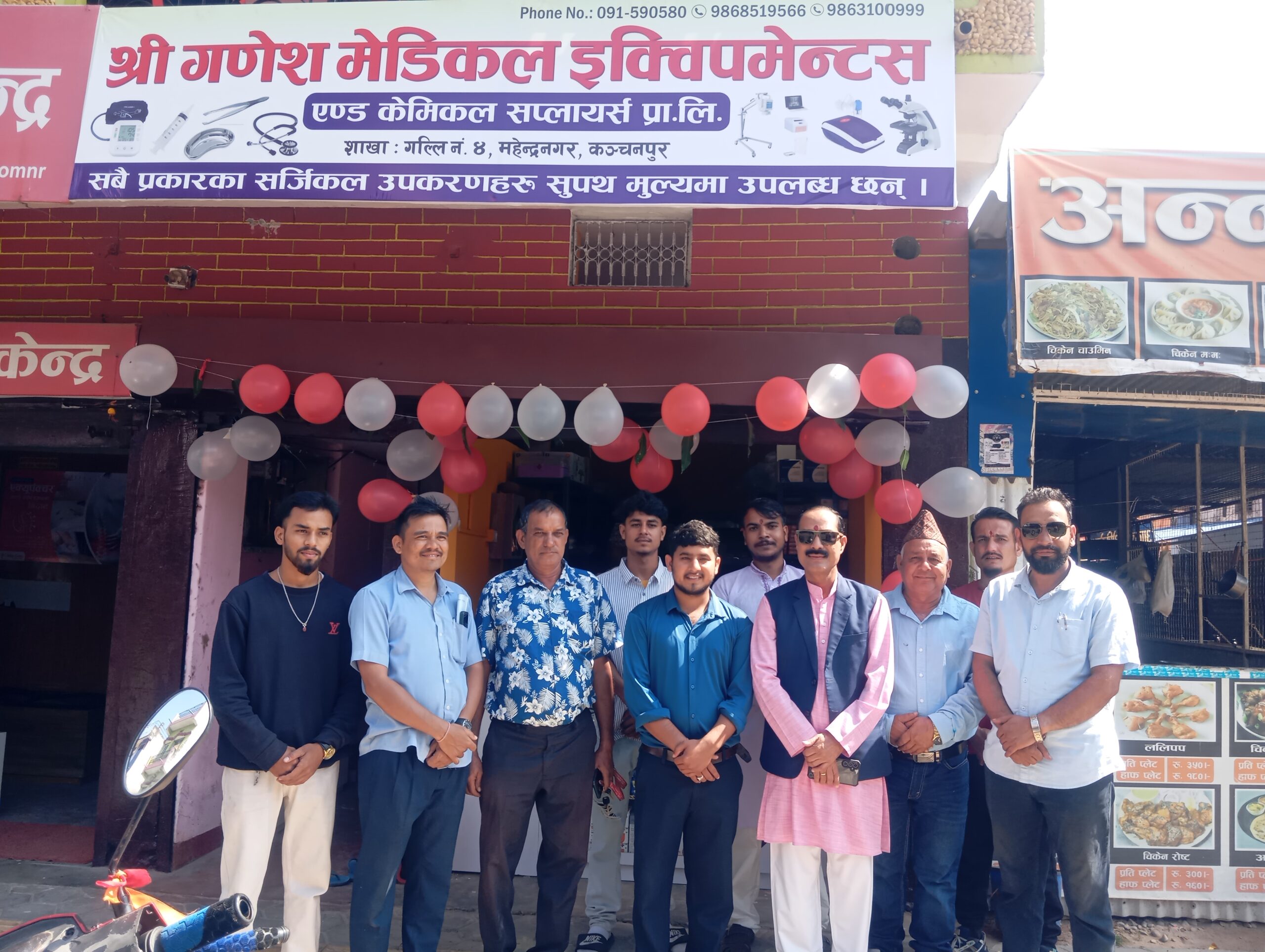 भीमदत्त नगरपालिका ४ महेन्द्रनगर गल्ली नम्बर चारमै बुधबार एक कार्यक्रमका विच भीमदत्त नगरका मेयर पदम बोगटीले उद्घाटन गर्दै गुणस्तरिय प्रभावकारी सेवा प्रवाहमा जोडदिएका छन । गणेश मेडिकल ईक्विपमेन्टस एण्ड केमिकल सप्लार्यस प्रालिका संचालक योगेश जोशीले सर्जिकल सम्बन्धीका समाग्री सहज रुपमा उपलब्ध गराउनका लागि शाखा विस्तार गरेको बताए । गणेश मेडिकल ईक्विपमेन्टस एण्ड केमिकल सप्लार्यस प्रालि महेन्द्रनगरका प्रमुख गोकर्ण महराले घरदेखि, विभिन्न कार्यालय, औद्योगिक प्रतिष्ठान सहितका क्षेत्रमा स्वाथ्य एव सरसफाई सबै समाग्री उपलब्ध गराउने बताए । गणेश मेडिकल ईक्विपमेन्टस एण्ड केमिकल सप्लार्यस प्रालि महेन्द्रनगरका मार्केटर विवेक साउदले प्रभावकारी सेवा प्रवाहमा जोडदिए ।