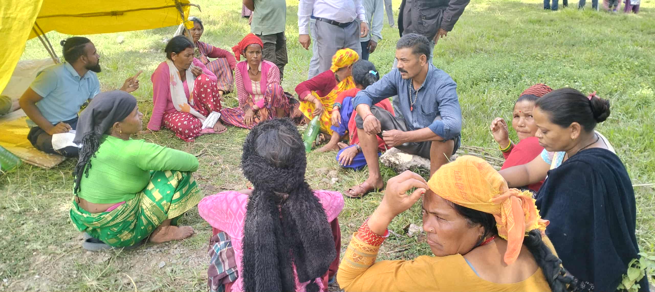 सरकारले पुर्नस्थापना गर्न नसक्ने अनि खाली जमिन भएको क्षेत्रमा टहरा लगाएर बस्दा सरकारले प्रहरी प्रशासन लगाएर उठाउने भन्दै डिभिजन वन कार्यालय मुल गेट अगाडी धर्नामा सबेका छन । नालाबालासंगै दैनिक खाने बन्दोबस्त सहित वन कार्यालय अगाडी धर्नामा बसेका छन ।