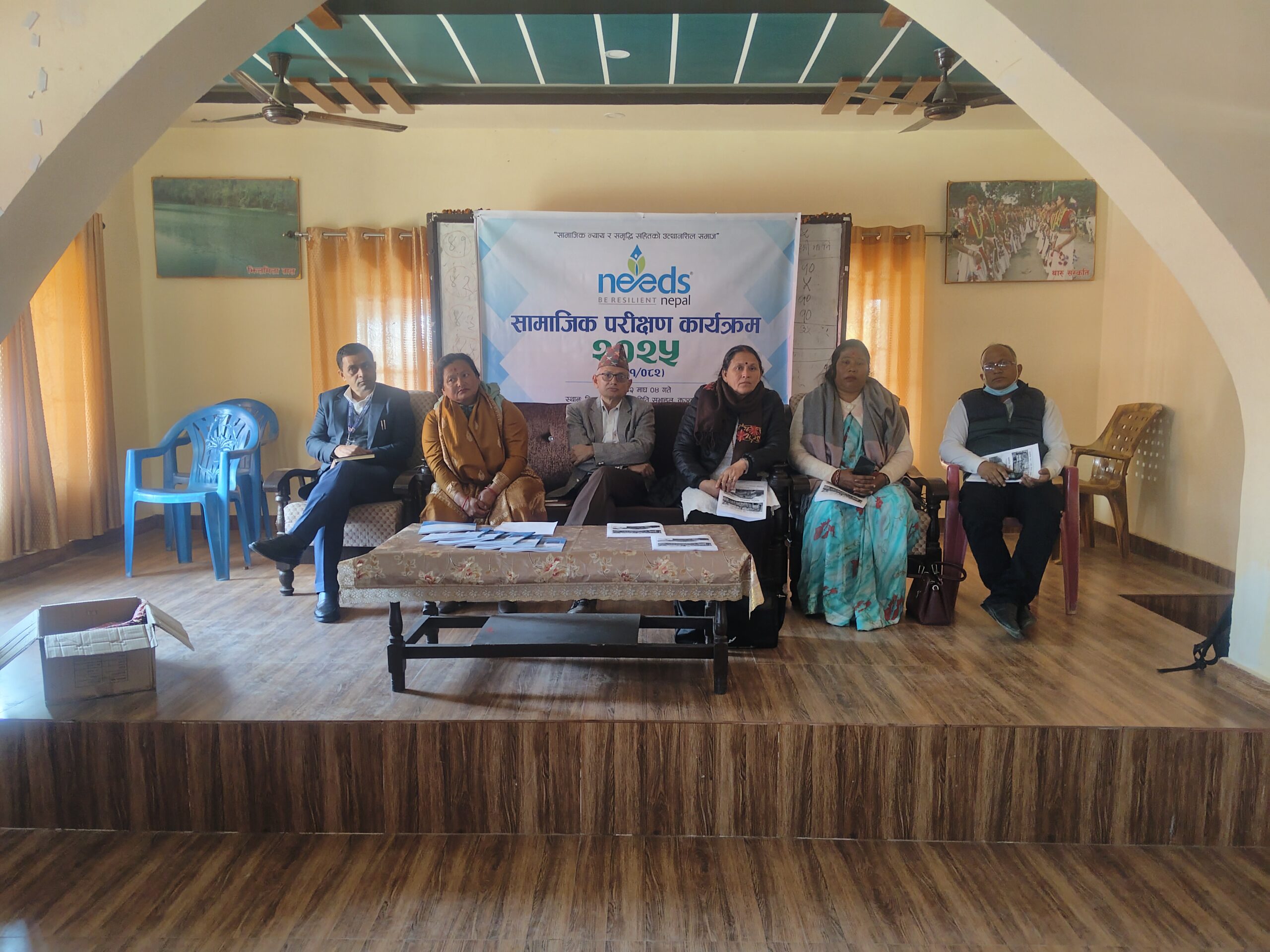 कञ्चनपुर । निड्स नेपालले सामाजिक परीक्षण कार्यक्रम गरेको छ । आइतबार महेन्द्रनगरमा निड्स नेपालले समाजिक परिक्षण कार्यक्रम गरेको हो । कार्यक्रममा निड्स नेपालका कार्यकारी निर्देशक भवराज रेग्मीले समाजिक उत्तरदायी अन्र्तरगत संस्थाले हरसिहाब किताब राखेको बताए । कार्यकारी निर्देशक रेग्मीले सरोकारवाला निकायको उपस्थितिमा समाजिक परीक्षण गरेको बताए । समाजिक परीक्षक शिवराज भट्टले कार्यपत्र प्रस्तुत गर्दैै संस्थाले स्थानीय सरकारदेखिका निकायसंग समन्वय गरेर कामकाज गरेको बताए । कार्यक्रममा जिल्लाका स्थानीय तहका जनप्रतिनिधीले निड्स नेपालले संचालन गर्ने कार्यक्रम स्थानीय तहसंग समेत समन्वय, सहकार्य र आवश्यकताका आधारमा संचालन गरिरहेको बताए । कार्यक्रमका प्रमुख अतिथि समेत रहेका जिल्ला समन्वय समिति कञ्चनपुरका प्रमुख दुर्गादत्त बोहराले समाजिक विकासका क्षेत्रमा निड्स नेपालले गर्दै आएको कार्यक्रम थप दीगो र प्रभावकारी बनाउनुपर्नेमा जोडदिईन । निड्स नेपालका उपाध्यक्ष तारा धामीको अध्यक्षतामा भएको कार्यक्रममा जिल्लाका सरोकारवाला सहितको उपस्थिति रहेको थियो ।